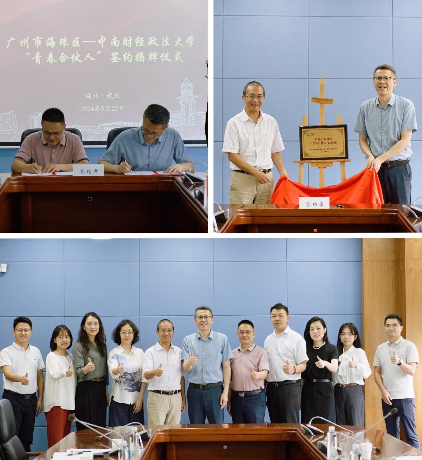 (通讯员 张亚星)5月22日,学校与广州市海珠区“青春合伙人”合作协议签订暨揭牌仪式在中原楼三楼会议室举行,海珠区委组织部副部长、人才办副主任李桥等一行五人,与学校就业指导服务中心主任温习、校友工作与社会合作部部长笪宁、党委学生工作部副部长葛明、党委研究生工作部副部长李芳、校团委副书记熊灯等参加仪式,仪式由校友工作与社会合作部副部长饶丹雪主持。