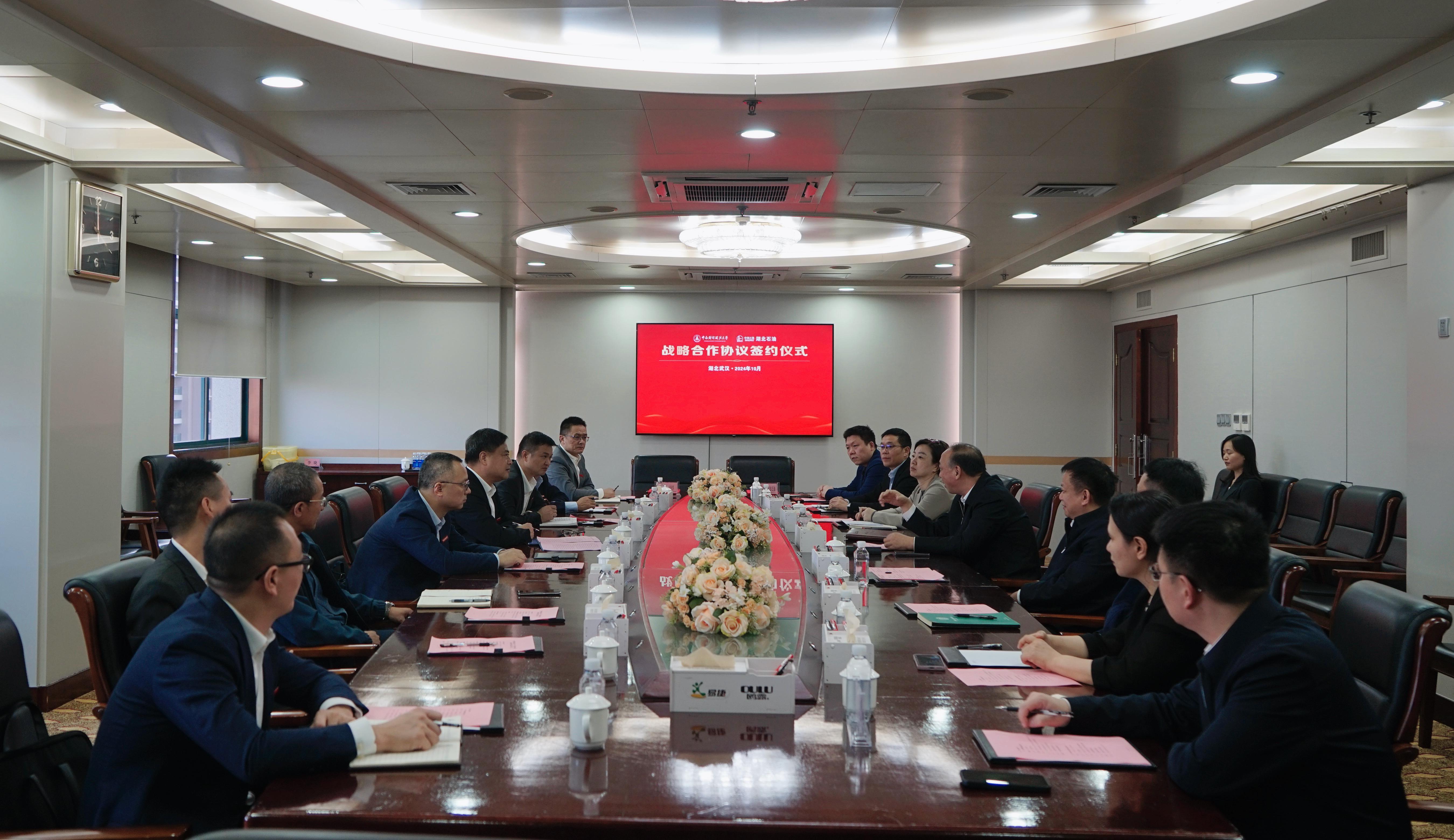 新闻网讯(通讯员/摄影 张亚星)10月24日,学校与中石化湖北石油签订全面合作协议。党委书记侯振发、党委副书记陈狮等一行赴湖北石油大厦,与中石化湖北石油党委书记、分公司代表于海平,副总政工师、党委组织部部长任莉,副总经济师、油气营销中心经理向桦及经营管理部、战略客户部、易捷公司、综合办公室等单位负责人亲切会面。